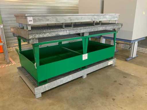 einschließlich Maße: 1x L2620 x W1310 x H210 mm, 1x grün lackiert, Maße: L2500 x W1445 x H870 mm