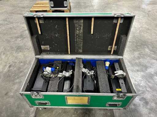 Klassisches Stroboskoplicht mit leistungsstarken RGBW-LEDs. 42° Öffnungswinkel und 130° Raumstreuung. Beinhaltet 4 Flightcases.