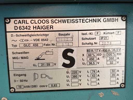 CLOOS GLC 456 – MIG/MAG Schweißanlage (450 A / Baujahr 1992)