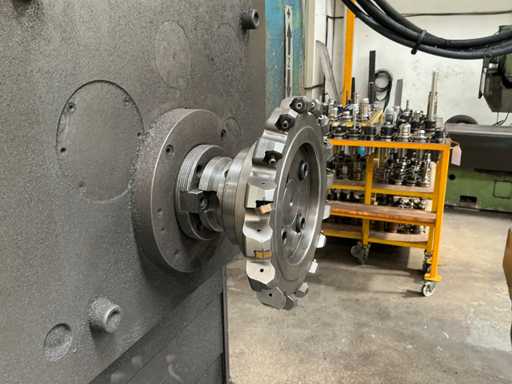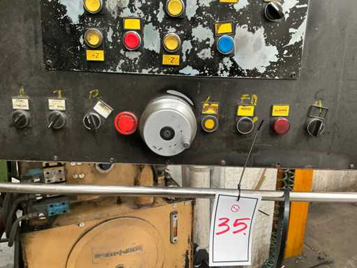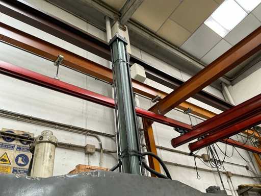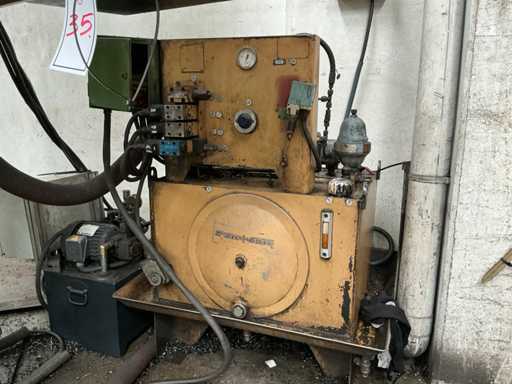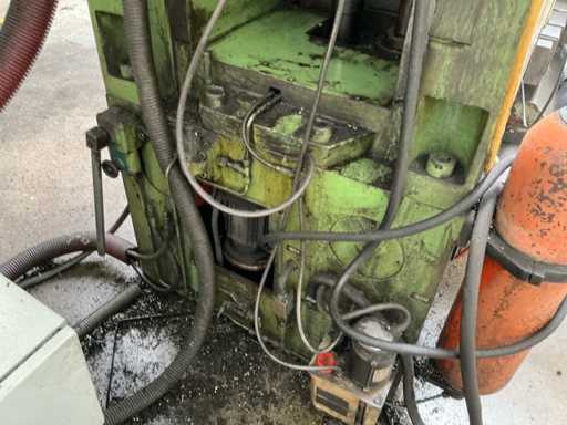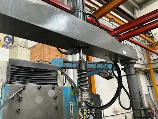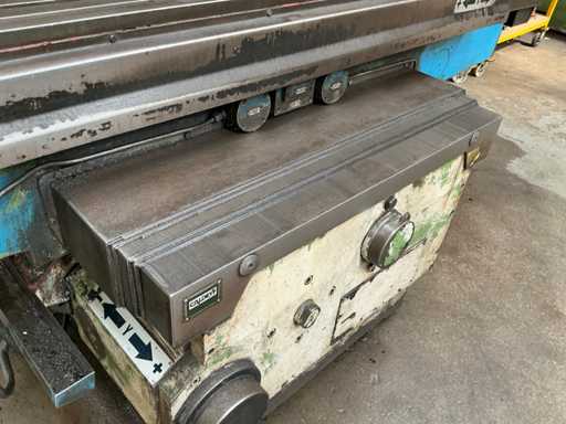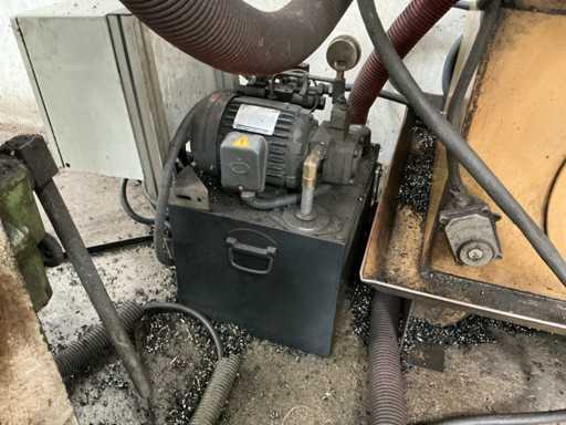 - Eine an den Tisch angepasste hydraulische Presse ist im Lieferumfang enthalten: Arbeitsbreite ca. 900 mm, maximale Werkstückhöhe ca. 650 mm.