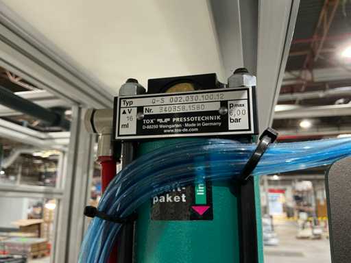TOX Pressotechnik pneumohydraulische Presse, Modell Q-S 002.030.100.12, Volumen 16 ml, maximaler Druck 6 bar.