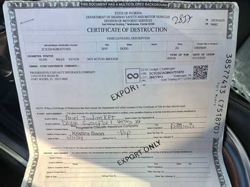 • Certificate of Destruction (Florida, Export Only) – Fahrzeug offiziell für den Export freigegeben, vollständig verzollt und eingeführt in die EU