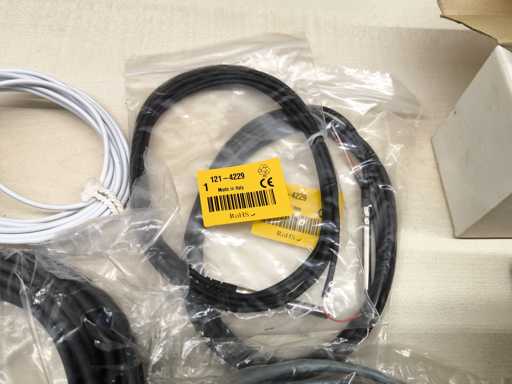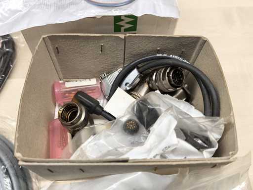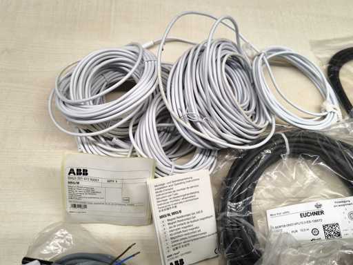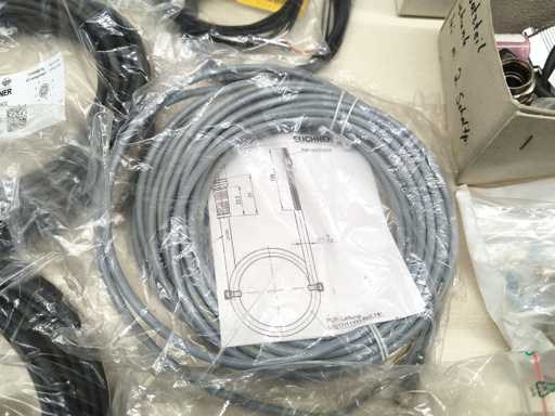 Konvolut von industriellen Sensor- und Verbindungskabeln, Magnetkontakten und Steckerzubehör von führenden europäischen Herstellern.
