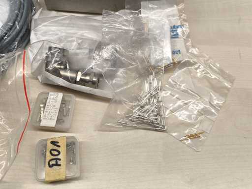 Einige Anschlüsse und Zubehör in offener Aufbewahrungsbox, aber in gutem, sauberem Zustand
