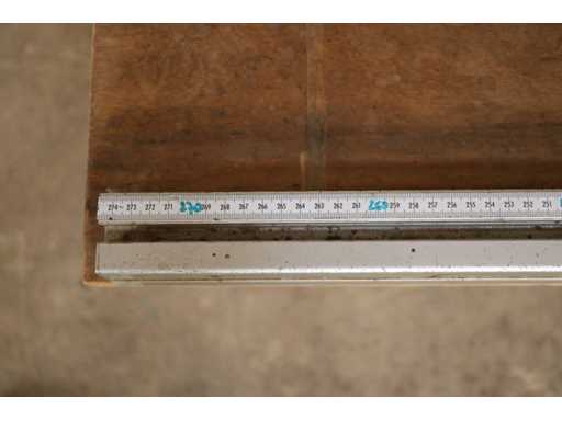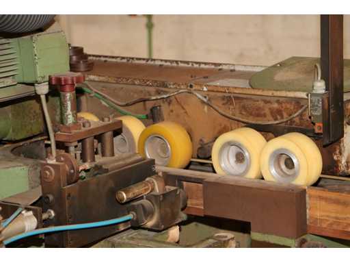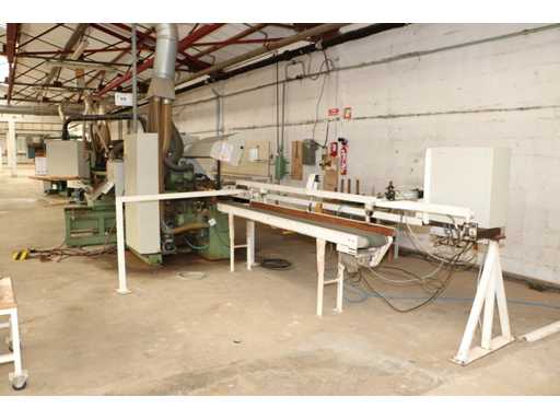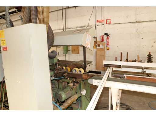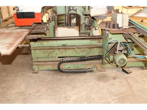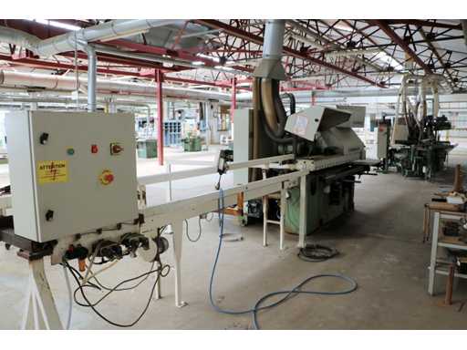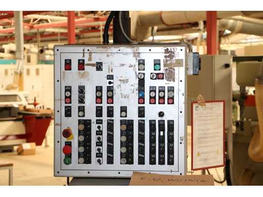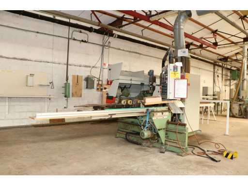 3200 mm. 10 PS Motor, 11,5 A Leistung. Hauptblatt Ø550 mm (ohne Ritzer) oder Ø400 mm (mit Scheibe). Ø120 mm Scoring-Maschine. Cutter Ø220 mm. Hängendes Rednerpult, digitalisierter Guide 1300 mm. Saugkraft Ø120/100 mm.