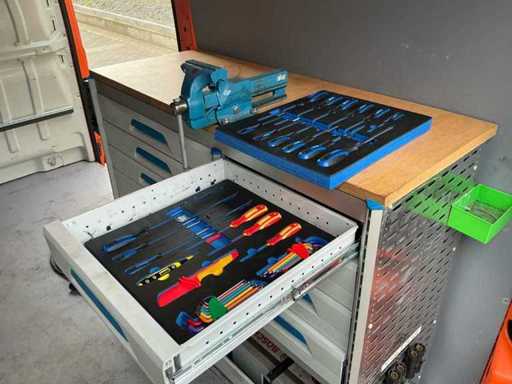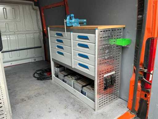 Vorgestellt: Anhängerstange, Werkstattausrüstung Sortimo, komplett mit Werkzeugen, Arbeitsplatte mit Schraubstock, Wandler 12V auf 22V, Steckdose, Innenbeleuchtung, 2 Bosch T5 077 Batterien, Wassertank mit Wasserhahn, Papierhalter, blinkendes Licht, elektrische Fenster, Navigation, Tempomat, Lenkradsteuerung, Telefon, elektrische Spiegel, siehe beigefügte Akte mit Wartungshistorie.