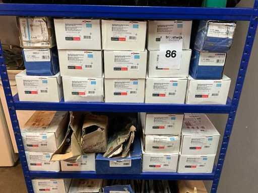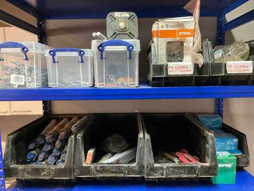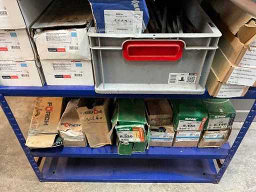 Bestehend aus einem Lagergestell mit einer großen Charge verschiedener Schrauben