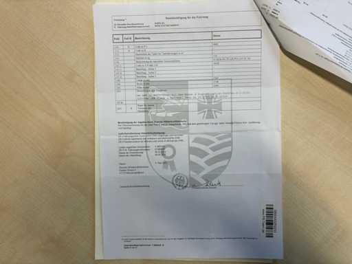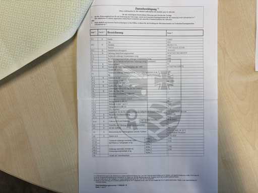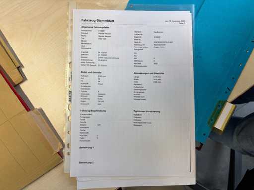 • Borddokumente: EG-Übereinstimmung, Datenbestätigung, Zulassungsbescheinigung Teil I & II