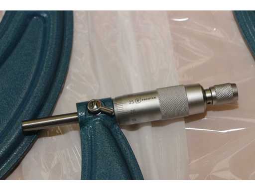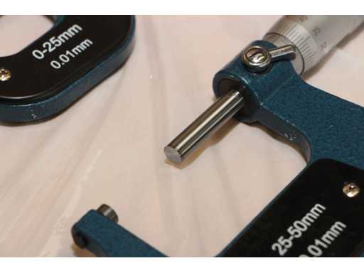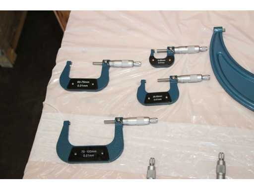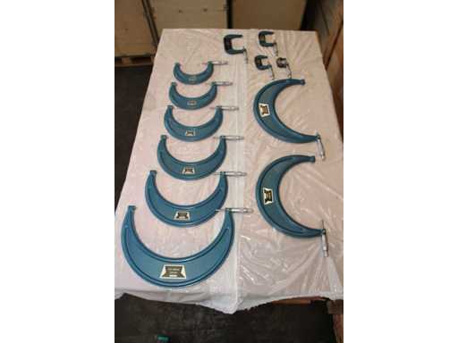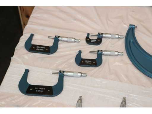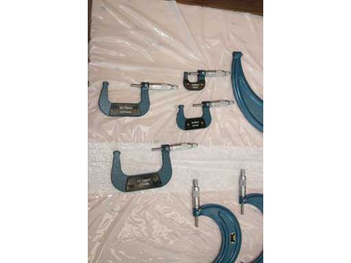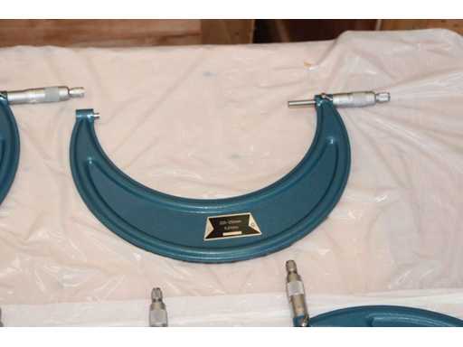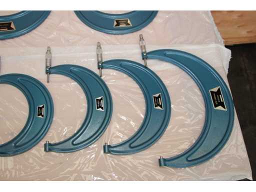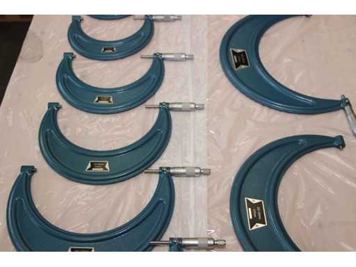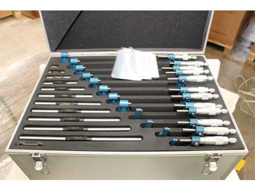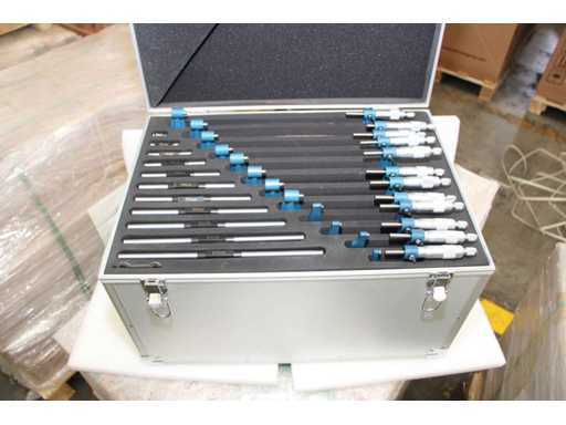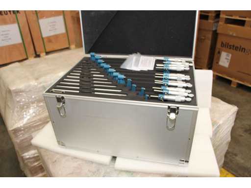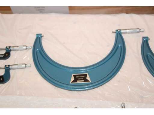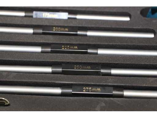 Set bestehend aus 12 Zentesimal-Mikrometern für Messungen von 0 bis 300 mm. Maße: 0-25mm; 25-50 mm; 50-75 mm; 75-100 mm; 100-125 mm; 125-150 mm; 150-175 mm; 175-200 mm; 200-225 mm; 225-250 mm; 250-275 mm; 275-300 mm. Zertifikat inklusive