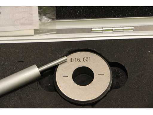 Dreipunkt-Mikrometer für interne Messungen von 16 bis 20 mm. Durchmesser 10,8 mm, Tiefe bis 74 mm, Höhe der Messspitzen 6,3 mm. 16 mm Kalibrierring im Lieferumfang enthalten. Genauigkeit 4 um, Auflösung 0,005 mm. Zertifikat inklusive