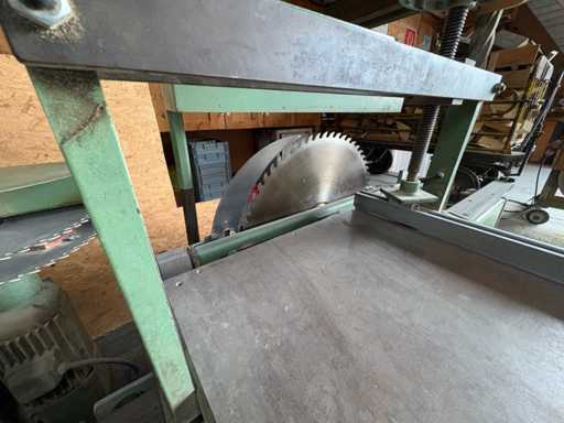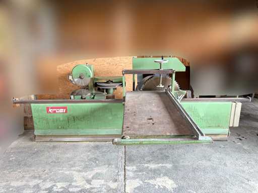 • Positioniert hinter der Hauptsäge für Längs- oder Gehrungsschnitte
