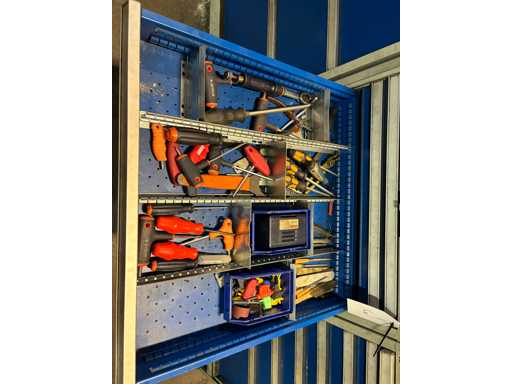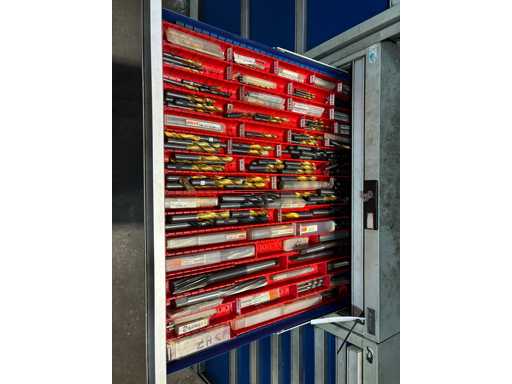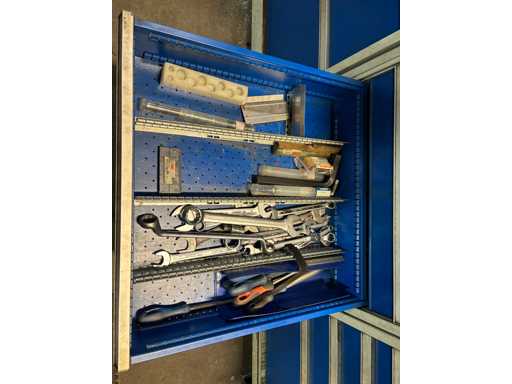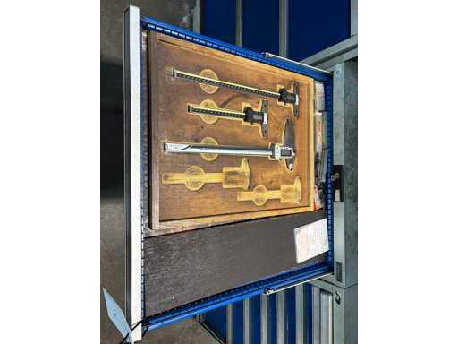 Inhalt bestehend aus Spiralbohrern in verschiedenen Ausführungen, drei digitale Messschieber, Handwerkzeug, Parallelunterlagen, Maulschlüsseln, Spannmitteln