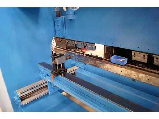 CNC hydraulische Pressbremse für Blechbiegarbeiten. Robuste und bewährte Maschine, geeignet für industrielle Blechbearbeitung, ausgestattet mit einem Cybelec DNC 60 numerischen Steuerungssystem zur Verwaltung von Achsen und Biegezyklen.