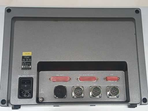 HEIDENHAIN PT 855 Positionierungssteuerungseinheit für Industriemaschinen und Produktionsanlagen. Die Einheit verfügt über integrierte Anzeige und Steuertastatur für Maschinenpositionierung und Prozesssteuerung. Das Gerät zeigt normale Anzeichen industrieller Nutzung. Schnittstellen und Steckverbinder sind intakt.