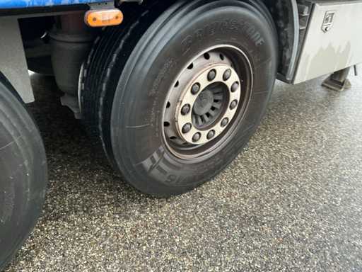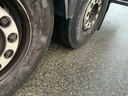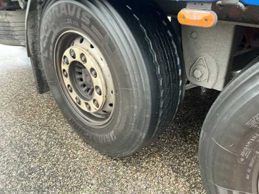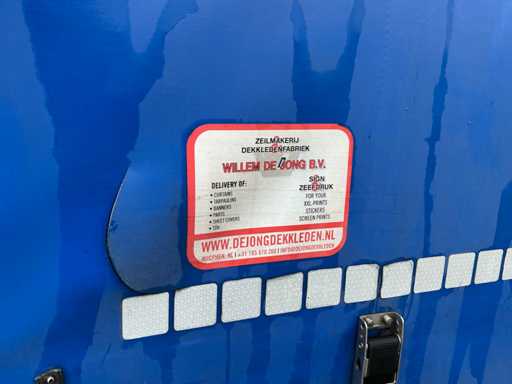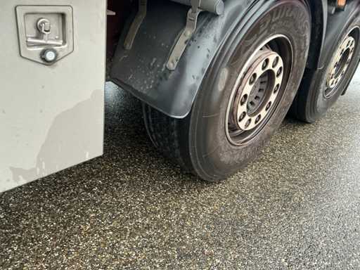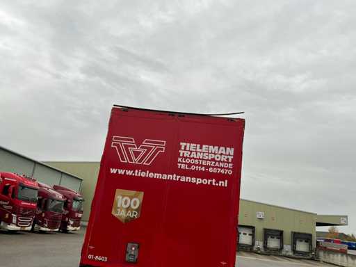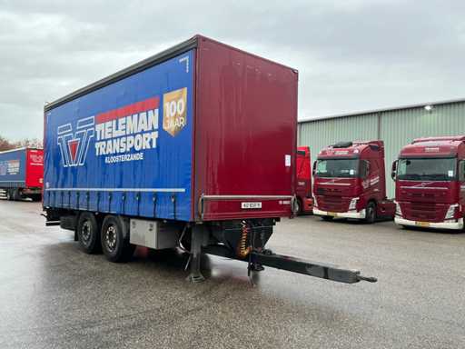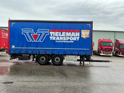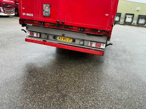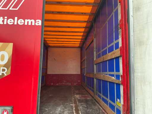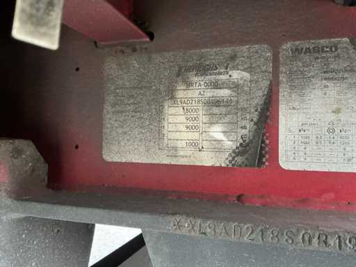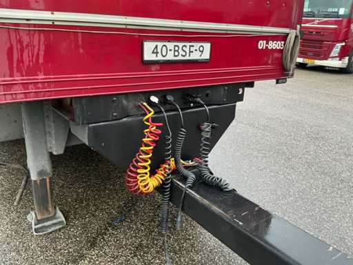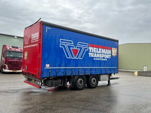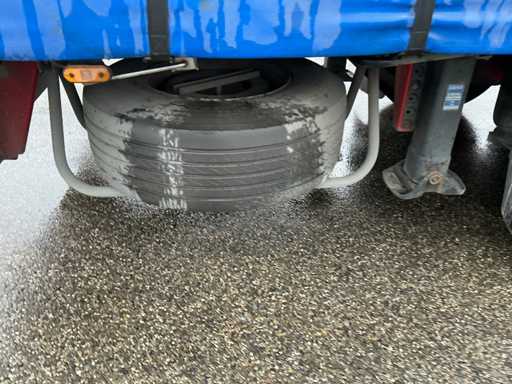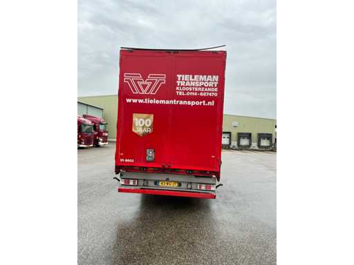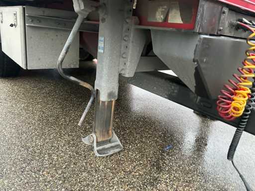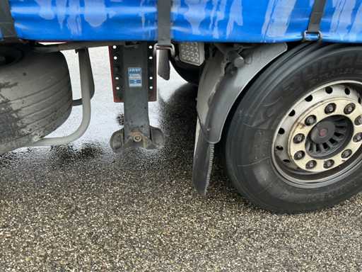 Maximale Masse 18.000 kg, TÜV-Ablaufdatum 09.09.2026, ausgestattet mit luftgefederten SAF-Achsen, Hertoghs Vorhangkarosserie, 4 Stützbeine