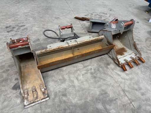 – Hydraulischer Grabenräumlöffel: 1200 mm Breite, 100 L Inhalt, 100 kg Gewicht