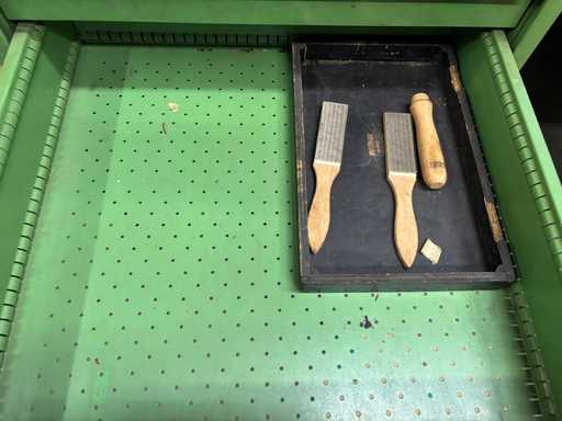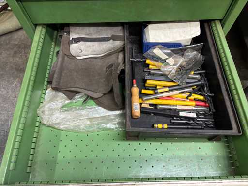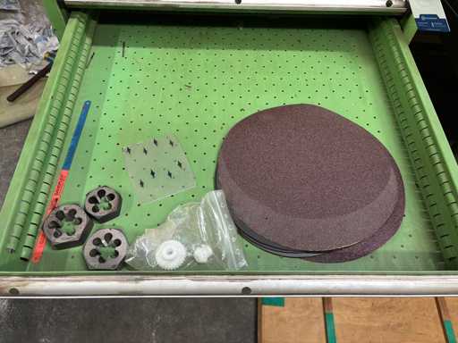 Inhalt bestehend aus Schneideisen, Schleifscheiben, Spiralbohrern