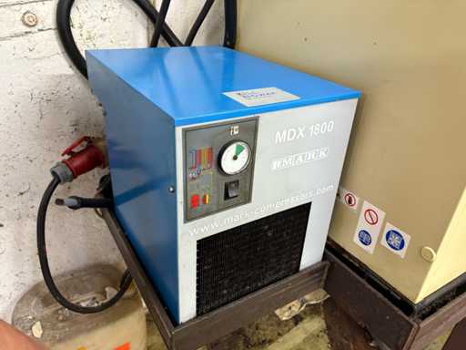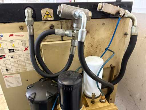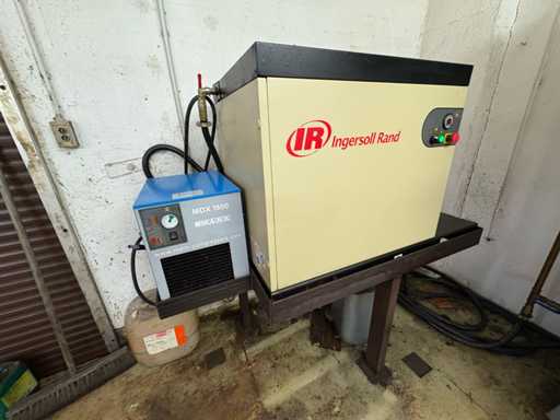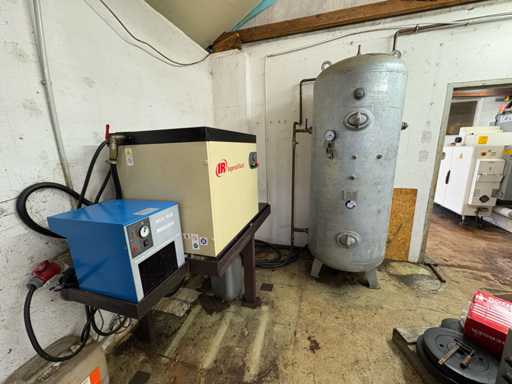 Verkauft wird eine komplette betriebsbereite Druckluftanlage bestehend aus einem Ingersoll Rand Schraubenkompressor (Typ IRN11K-CC-8 H), einem vertikalen 1000L-Druckbehälter der Firma OKS (Baujahr 2013) sowie einem Kältetrockner vom Typ MARK MDX1800.