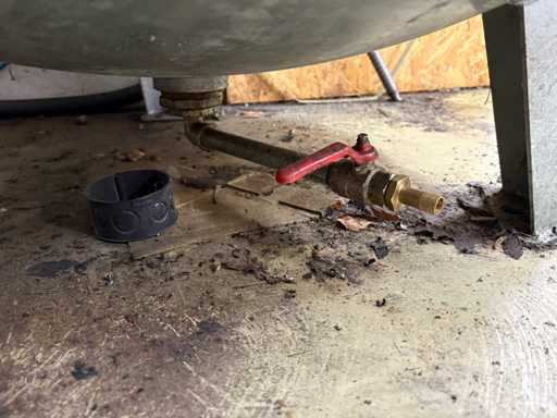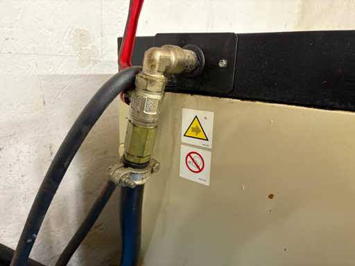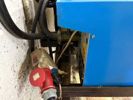 Technisch funktionstüchtig, optisch mit normalen Gebrauchsspuren (Staub, Lackabrieb, leichte Korrosion am Tankfuß). Steuerung am Kompressor zeigt Betriebsbereitschaft (kein Fehlercode aktiv).