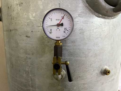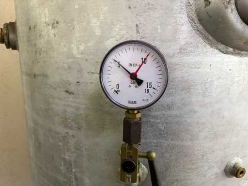 Alle Bedienelemente intakt, Druckaufbau funktioniert bis 10 bar laut Manometer. Trockneranzeige im grünen Bereich. Keine strukturellen Schäden erkennbar.