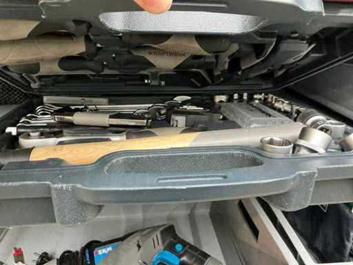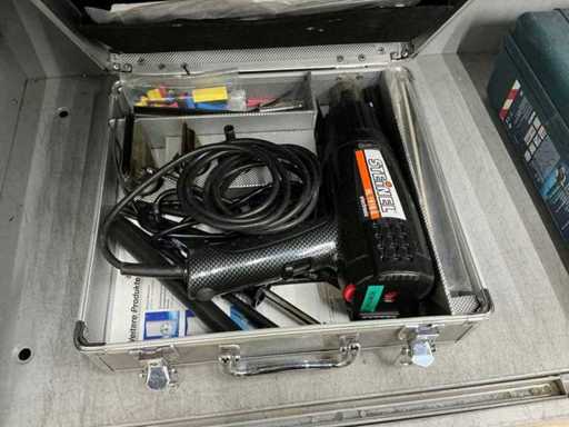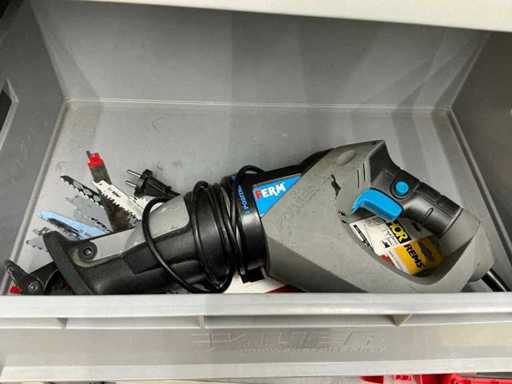 Inhalt Bosch-Stichsäge, Winkelschleifer, Schlagbohrer und schwerer Schlagschrauber. Ferm-Kolbensäge, Hitachi-Schleifer, Steinel-Haartrockner, Hilti-Dichtungsgerät und Dremel-Gravurgerät