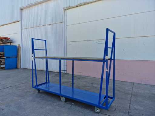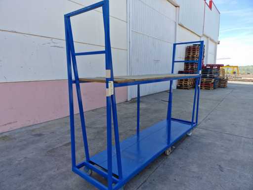 - 4 x Trolleys: Gesamtmaße 3000 x 700 x 2150 mm, 2 nutzbare Ladestufen ca. 2750 x 700 x 750 mm oben und unten 2600 x 700 x 1100 mm, 6 schwenkbare