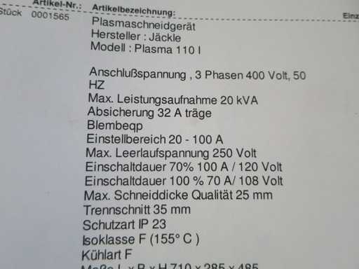 JÄCKLE PLASMA 110 I Plasmaschneidgerät
