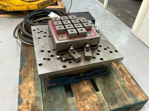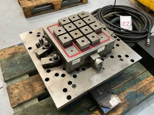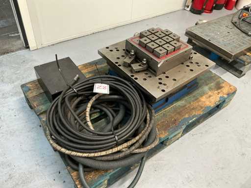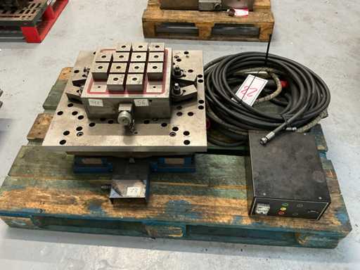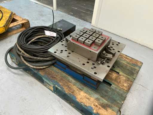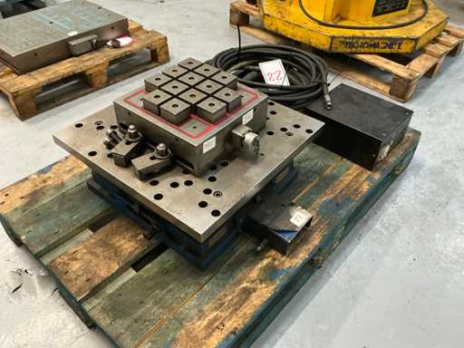 - Inklusive pneumatisch betätigtem Drehtisch mit Messskala.