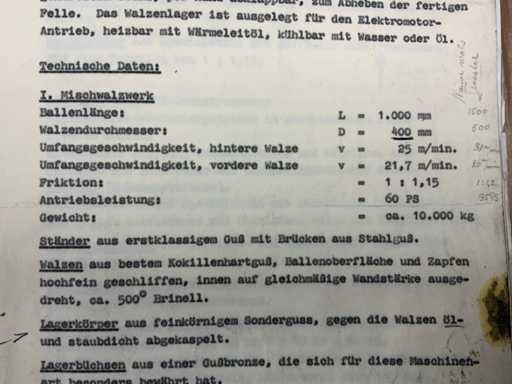 Joh. Kleinewefers MKG 40 Gummi 2-Walzen Mischwalze