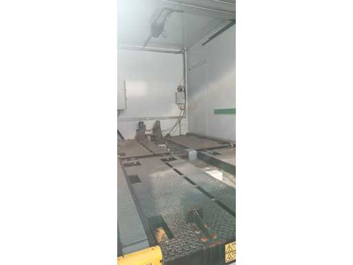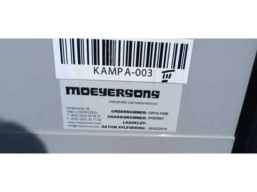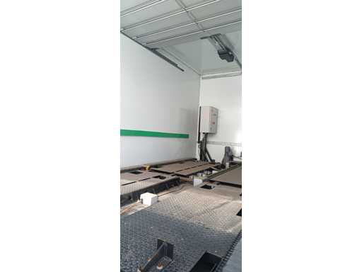 Kampa Schwerlastanhänger 12 t Typ. Achtung Überbreite! Für Transporthöhe wird Tiefbett Anhänger benötigt! Zuladung ca. 9 t (Aufbau ca. 3 t) Der Aufbau von Moeyersons und der Einbau von Joloda Hydraroll wurde speziell entwickelt um Batterien für den Audi E-Tron automatisch auf das Montageband zu verbringen.