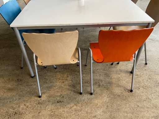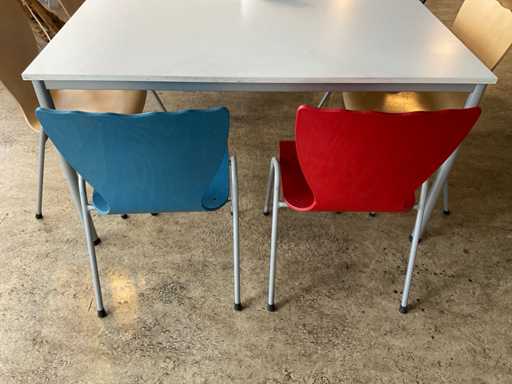 Tische: (LxBxH) 140x80x76 cm / Stühle 48x48x83 cm (Sitzhöhe 40 cm)