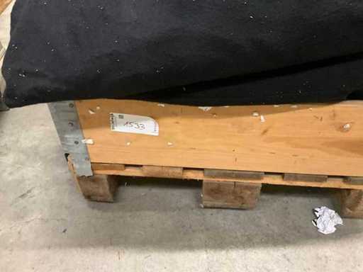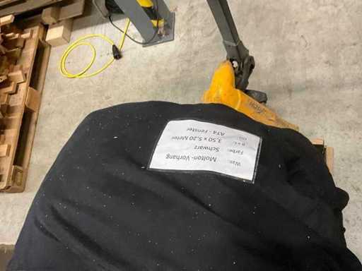 Ein sehr großer Vorhang oben gelöst, mit Rollen versehen (geschätzt 8 m mal 5 m) Zustand staubig