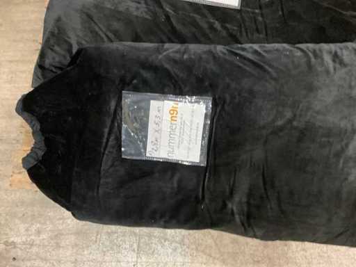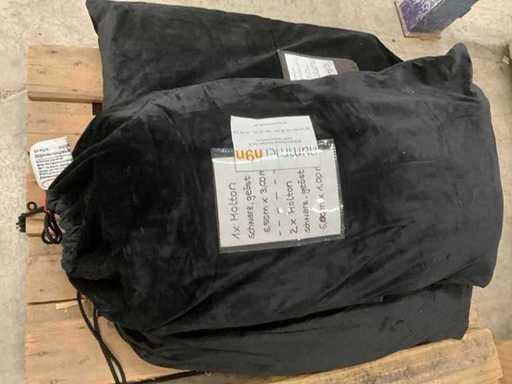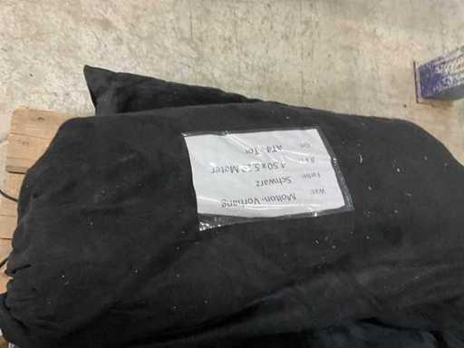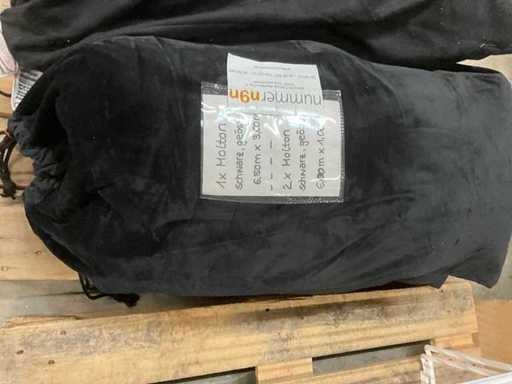 Konvolut Molton, Vorhang einseitig geöst, schwarz, schwere Qualität, unten Bleiband, B1, verpackt in einen Kordelsack 4 Stück