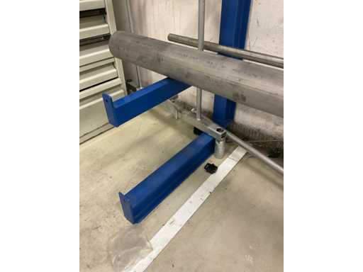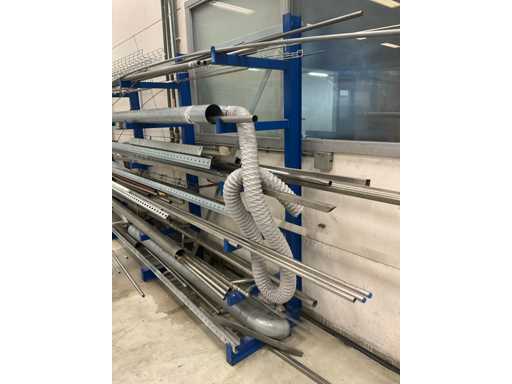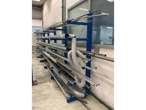 Kragarmregal mit Inhalt aus Edelstahlrohren und -profilen