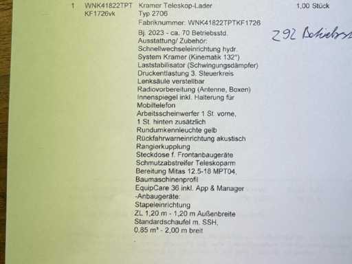 • Stapleraufnahme: Standardgabelträger 1,20 m (Außenbreite 1,20 m)