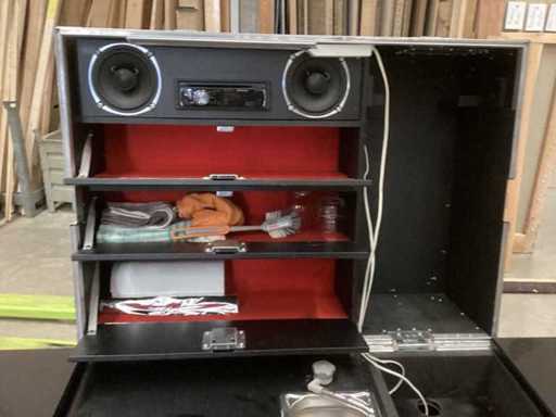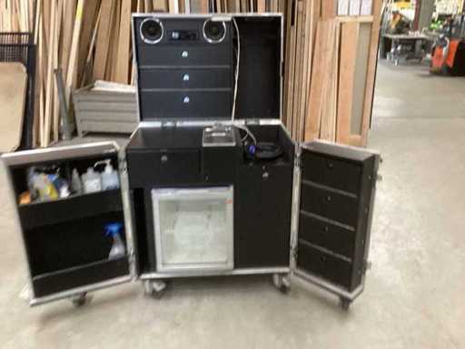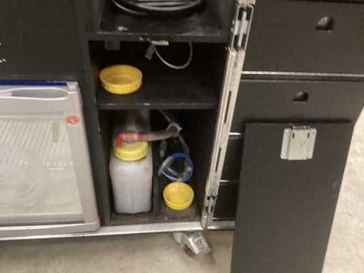 Küchencase zur Messemontage teilweise mit Inhalt ohne Kaffeemaschine