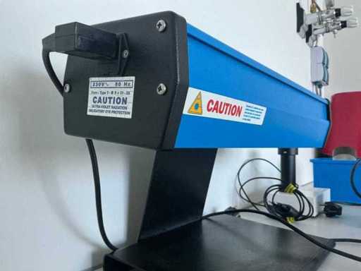 Bestehend aus unter anderem: UV-Lampe, Hygiena Pi-102 Luminometer, Labinco L46 Vortex-Mixer. Enthält Papierhalter, Aufbewahrungsfach mit Büroinventar und Philips-Funkgerät