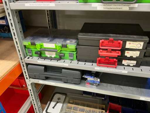 Bestehend aus 5 Einheiten, mit großer Anzahl Schrauben, Bolzen, und weiterem Verbrauchsmaterial und Zubehör