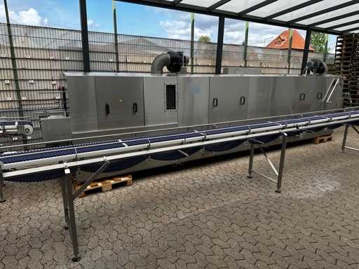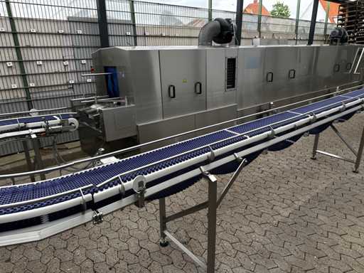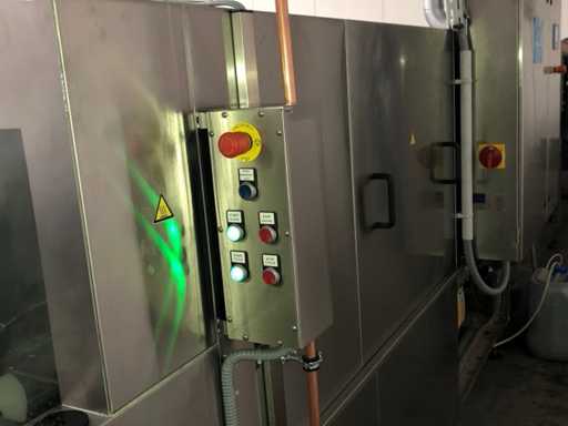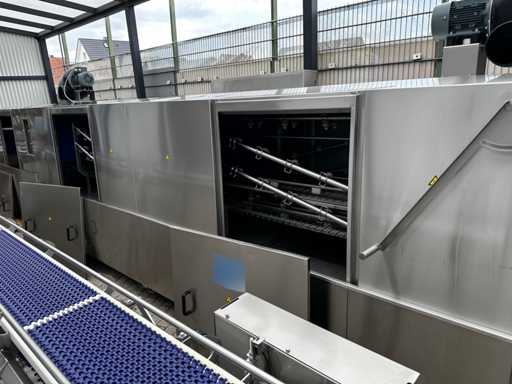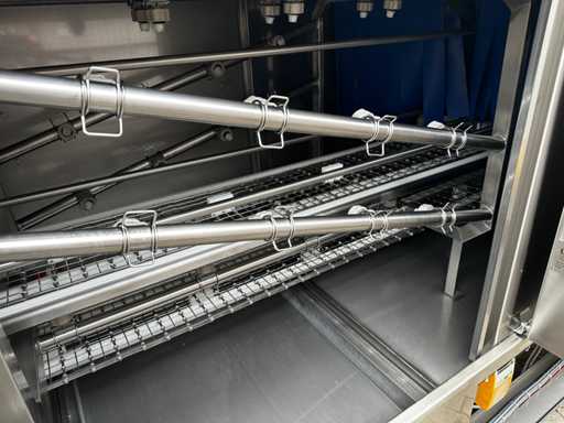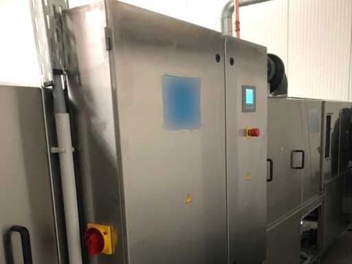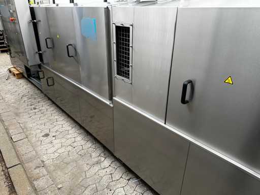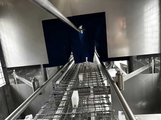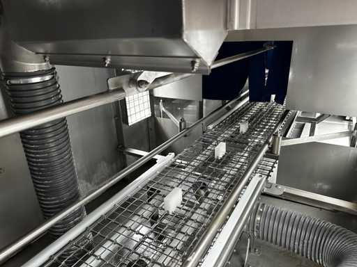 • Spülzone: 3 kW Pumpe, ca. 350 l Tank, 2×10 kW Heizkörper, Frischwasserzufuhr + Trocknungshilfe via Dosierpumpe