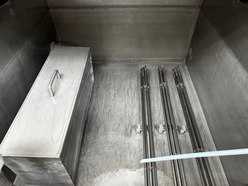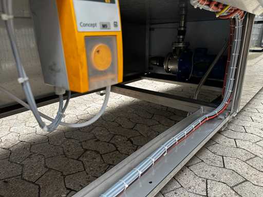 • Waschzone: 7,5 kW Edelstahl-Kreiselpumpe, ca. 400 l Tank, 3×10 kW Heizkörper, automatische Frischwasserzufuhr mit Dosierpumpe