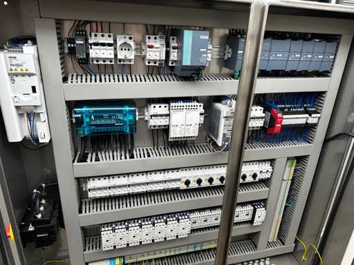 • Steuerung: SPS (Siemens S7), Frequenzumrichter (Lenze), Sicherungstechnik (Eaton), Verteiler (Wieland)