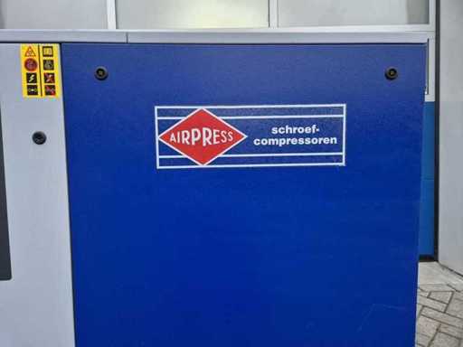 Airpress APS 30B/10 Schraubenkompressor; Seriennummer CAI811863; Arbeitsdruck 10 bar; Luftstrom ca. 3.500 l/min; Leistung 22 kW; Anschluss 400 V; Eigengewicht ca. 430 kg; Abmessungen ca. 800 x 1.300 x 1.220 mm. Hinweis: Die Maschine wurde nicht getestet.