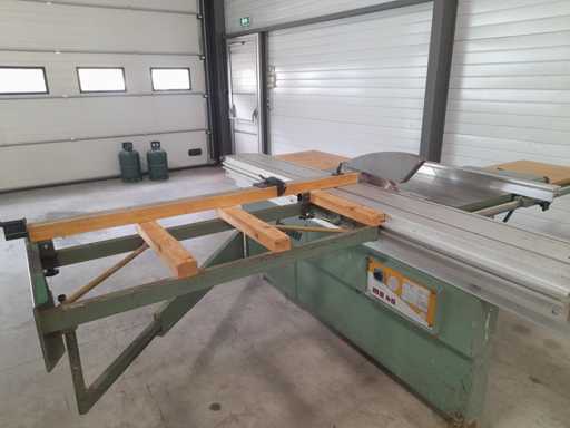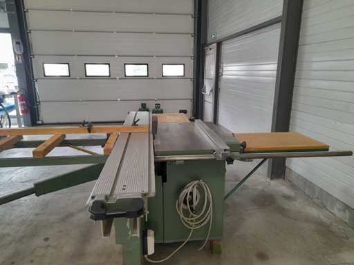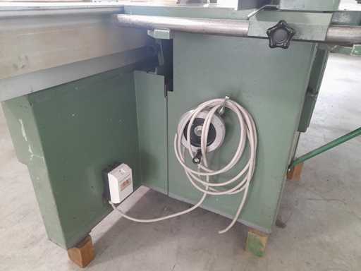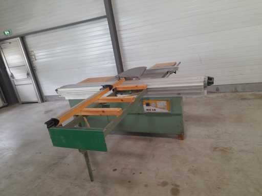 Schiebetischkreissäge mit Aluminiumwagen 2700 mm und Parallelanschluss 1400 mm.