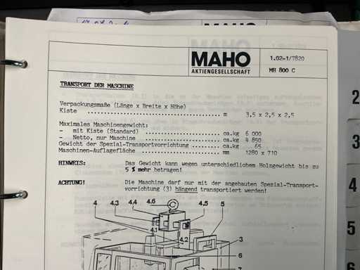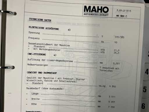 - Maschinenart: CNC-Universalfräsmaschine mit Steuerung MAHO CNC 432