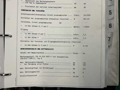 - Werkzeugwechsler: 24 Plätze, Ø 125 mm, L 315 mm, 8 kg max.