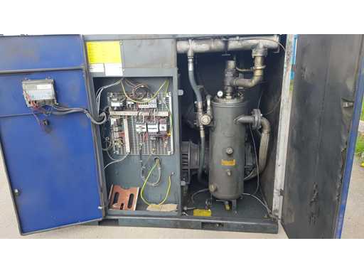 Zusätzliche Bemerkungen: Diese Maschine (C005) wird als Ersatzteil zum Verkauf angeboten. Es handelt sich um einen öleingespritzten Schraubenkompressor, der für die industrielle Druckluftversorgung ausgelegt ist. Er ist mit einem integrierten Bedienfeld (ES4000), einem vertikalen Ölabscheider und einem elektrischen Schaltschrank ausgestattet. Nicht betriebsbereit. • Nur für die Demontage oder Aufarbeitung reserviert."