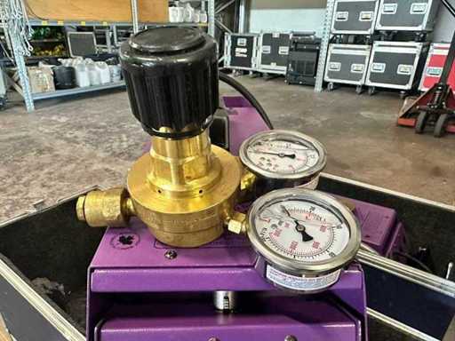 (55ml/h at 1.38 bar) combined with CO2 is able to generate an almost imperceptible mist while maintaining the transparency of the scenography. Includes flight case and pressure gauge.