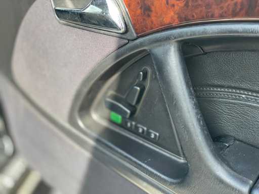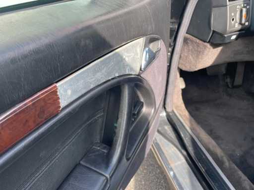 Der Innenraum ist vollständig und im Originalzustand erhalten. Die Ledersitze zeigen altersgemäße Patina, sind jedoch ohne strukturelle Schäden. Holz- und Kunststoffoberflächen sind sauber und nicht übermäßig abgenutzt.