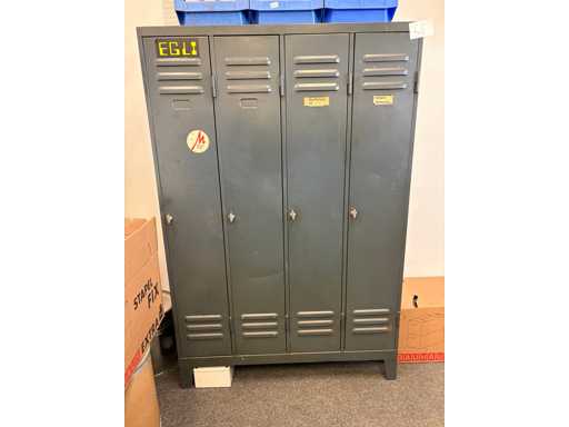 4 Abteile, jeweils mit Tür, Belüftungsschlitzen und Schloss