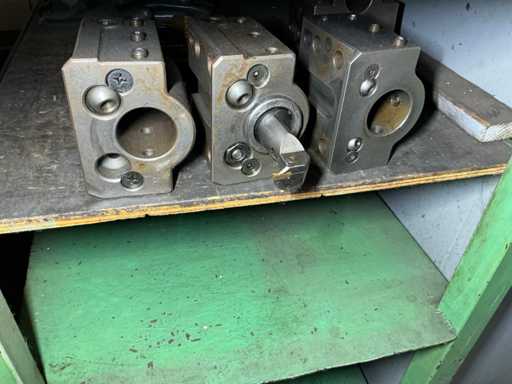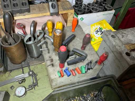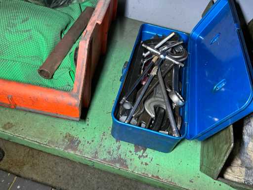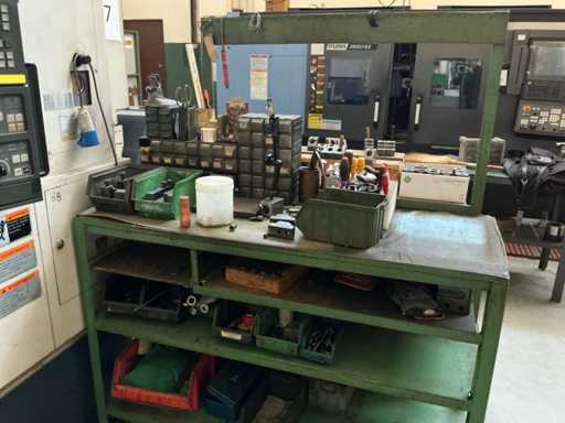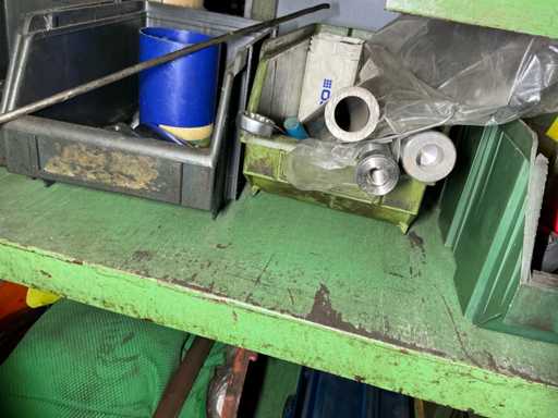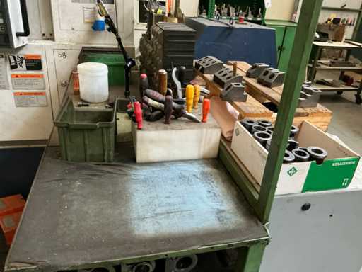Geliefert mit einem Rad-Eisentisch mit Utensilien und einem Eisenschrank mit Inhalt